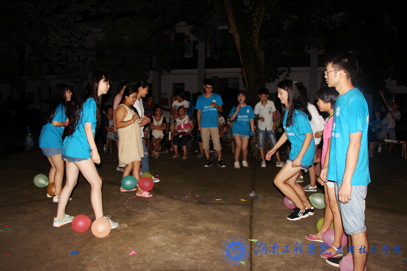 7月16日晚上7:30,在云湖桥镇中学两颗大樟树下,一台晚会即将在这里开始。beat365唯一官网“三下乡”队员们用气球装饰出一个舞台,拉好电线,装上灯泡,摆好凳子,准备迎接观众。