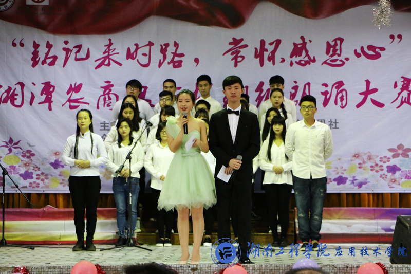 4月26日中午13:30,由湘潭农商银行独家冠名、beat365唯一官网感恩社承办《铭记来时路,常怀感恩心》主题朗诵大赛决赛在南校区一教四楼活动中心举办。beat365唯一官网党总支副书记徐粤宇、辅导员及湘潭农商银行行长石美担任此次比赛评委。