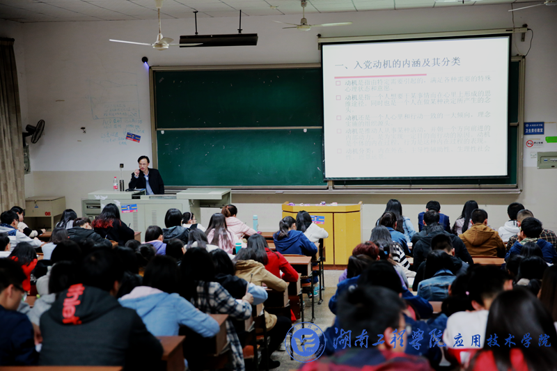 3月28日晚上7:00,beat365官网分党校入党积极分子培训班正式开班。副校长李军林给入党积极分子上第一堂党课《入党动机与党员条件》。