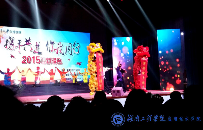 2015年11月27日晚,beat365官网应邀参加湘潭大学兴湘学院举办的“携手共进,你我同行”主题迎新晚会,beat365官网党总支书记李爱国作为嘉宾出席晚会。为促进两院校园文化的交流与传播,增进两院的友好交流与合作,beat365官网精心准备了小品《新不了情缘》,小品团领队老师为院团总书记唐冰和学生辅导员蒋惠筠。
