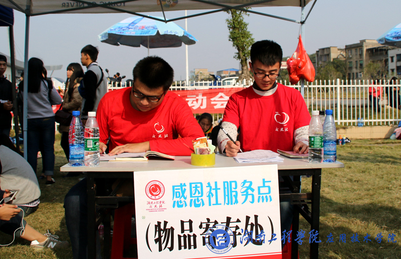 11月1日至2日我校运动会期间,beat365官网感恩社开展了一系列感恩校园的志愿活动,进一步倡导了感恩精神,培养志愿服务理念,以实际行动传播奉献精神。为呼吁更多的志愿者加入到感恩社队伍中来,“感恩社”在校运会期间,提供校内免费寄存物品处、维护校园环境卫生,传播奉献精神。