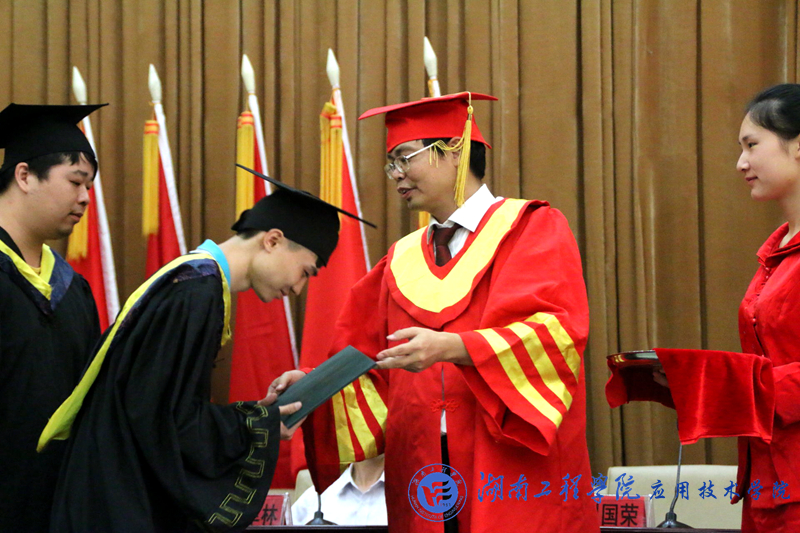 刘国繁校长向毕业生表达了最热烈的祝贺和最诚挚的祝福。他代表学校感谢这四年中同学们将青春留在了湖工,感谢大家为学校的发展所做出的重要贡献,同时告诫年轻人不可太任性。他建议毕业生:一是了解自我,“知人者智,自知者明”,深入了解自己,这才是明智之举;二是看清现实,明确工作目标,知道自己能做什么,脚踏实地,“尽”力而行;三是要将自我能力和客观现实相结合,勤学乐思,勇于实践,这样才能迈向成功的彼岸。刘国繁校长深情致意,母校是毕业生永远的家,希望在这里一起成长过的同学们都关注母校的发展,“四年前,学校张开双臂迎接你们到来,四年后,学校站在你身后,做你坚强的后盾”,最后寄望同学们“长风破浪会有时,直挂云帆济沧海”。