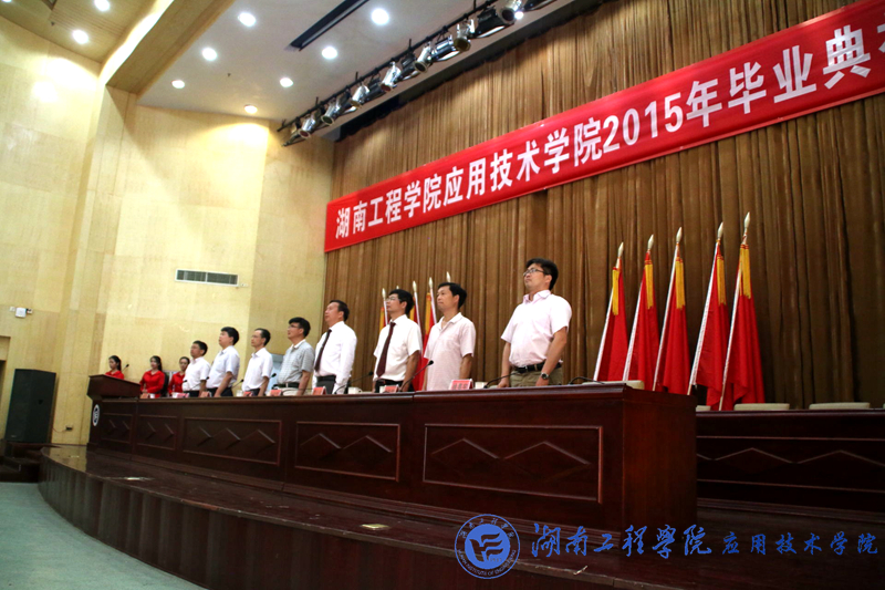 6月24日下午,在激昂的国歌声中beat365唯一官网2015届毕业典礼在图书馆第一报告厅举行,beat365唯一官网主管领导李军林副校长担任主持。出席典礼的有校领导刘国荣书记、刘国繁校长,beat365唯一官网负责人李爱国书记、李光中院长、梁开健副院长、胡武平副院长、徐粤宇副书记,以及全体教职员工与毕业生代表。