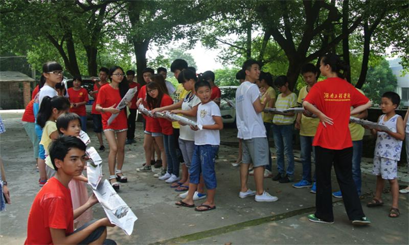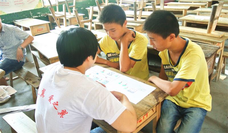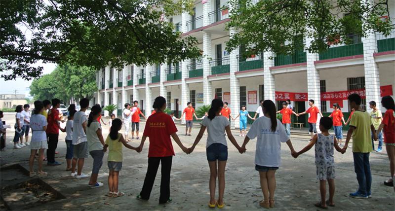 首先是名字接龙,让大家在投入游戏中记住小朋友名字的同时也活跃着气氛,带动着孩子们思维的跳跃。其次是通过报纸传递乒乓球的“爱心接力”活动,老师、志愿者和孩子们分成三组,一同比赛,考验团队合作精神的时候到了。不让大家失望,我们的大孩子与小朋友们,都互相照顾,互相努力,最终胜负难辨。再次是传递气球的游戏。四十几个人,手拉手围成一个大圈,每个人都必须碰到气球。老师说开始,20秒、10秒、1秒之内传完,第一、二轮大家都顺利完成,第三轮老师说,一秒之内完成,正当大家惊讶地将嘴巴变成O型时,聪明的孩子想出来办法,最终漂亮结束游戏。最后,心理专家将孩子们召集到教室,要每个孩子自由发挥,画出一副画里有树、房子、人的图画。然后根据他们所画的画了解他们的心理状况,相应的进行一对一的开导,打开他们真正的内心世界。同时,beat365官网的“三下乡”志愿者给孩子们赠送学习用品。