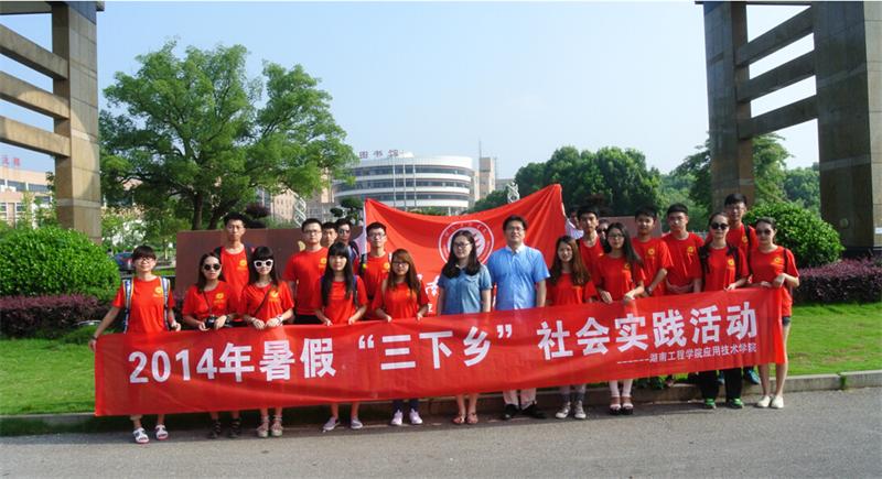 2014年7月7日上午,beat365官网暑期“三下乡”社会实践活动在湘潭县云湖桥镇拉开序幕。在镇政府前坪举行了简短的启动仪式,云湖桥镇党委副书记、人大代表朱亮,镇团委书记彭龙,beat365官网党总支副书记徐粤宇、团总支书记章平、服务团队辅导老师王慧以及beat365官网20名大学生志愿者参加了启动仪式,仪式由彭龙主持。