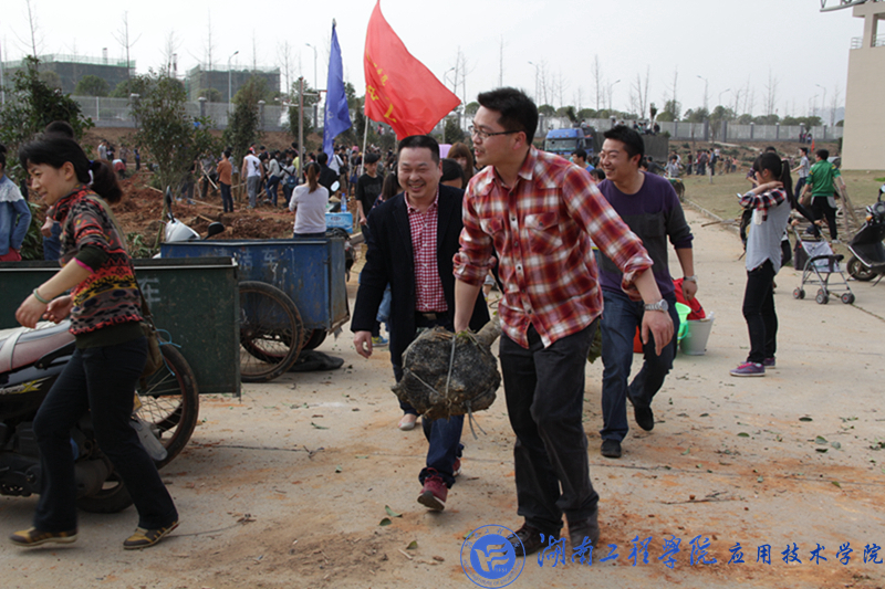 3月18日下午,我校师生在体育馆开展义务植树活动,与湘潭市林业局共同栽种“桂花林”。beat365官网院长李光中率全院教职员工和部分同学,响应号召,积极参与。
