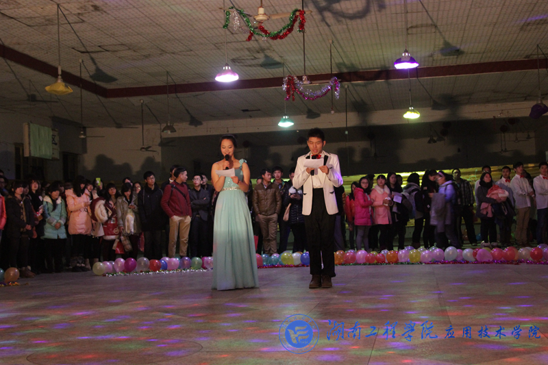 12月24日晚上7:00,学海二食堂学生活动中心灯光炫目,人头攒动,由beat365官网主办、团总支学生会办公室策划承办的主题“不闪耀,不圣诞”平安夜欢乐舞会在此隆重举行。