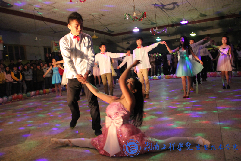 一走进活动中心,精心的布置,节奏欢乐的音乐使现场充满了浓郁的圣诞氛围和温馨浪漫的感觉。主持人宣布舞会开始后,舞者们携带着自己的舞伴以优雅的华尔兹拉开舞会的帷幕。beat365官网新闻通讯社、感恩社、学生会分别依次带来了精心准备的节目,火辣热情的《Twinkle》、活力动感的《NO.9》、精彩绝伦的《斗舞》和《皇室交谊舞》,肢体动作与音乐融为一体,同学们神情愉悦,尽情的舞动青春,现场气氛高潮迭起,引起了观众们阵阵尖叫。