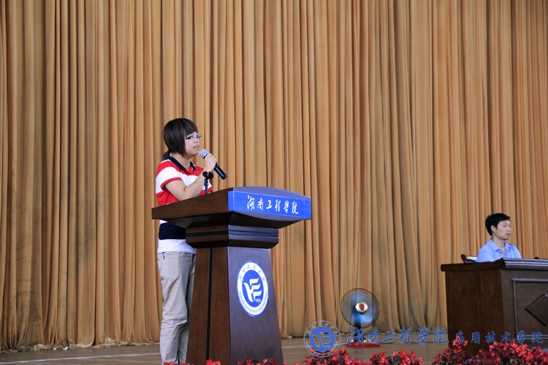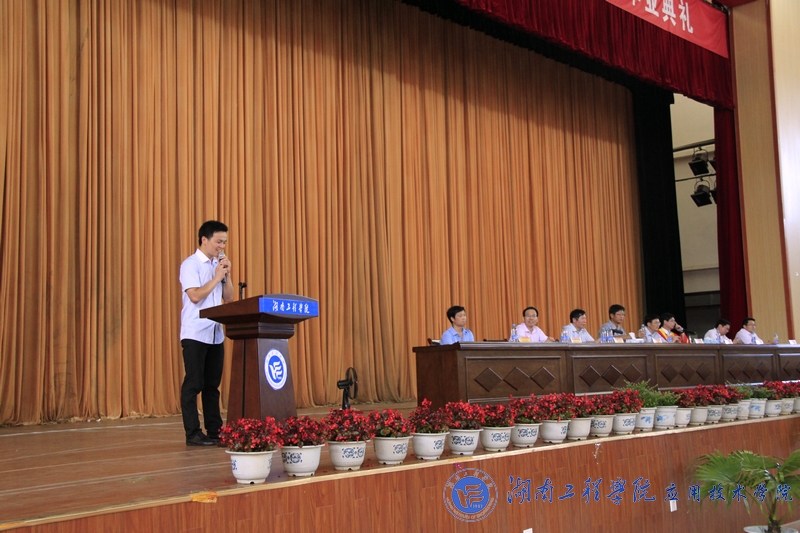教师卢时光、毕业生袁小庆、大三学子安雨分别上台发言。卢时光以三个哲理故事为毕业生上了最后一课,他告诉同学们“成功并不是唾手可得的,一个人的成功需要坚持不懈的努力、乐观向上的心态和不放弃自己的梦想”。袁小庆慷慨激昂地为同学们诠释了“感恩”和“自强”这两个词语,几个深深的鞠躬更是表现出了对学校的不舍。安雨表示将以学长学姐为榜样,改进不足,厚积薄发,积累扎实的基础,储备丰富的知识,树立正确的人生观价值观,成为祖国的有用之才。