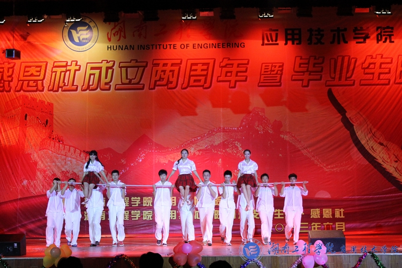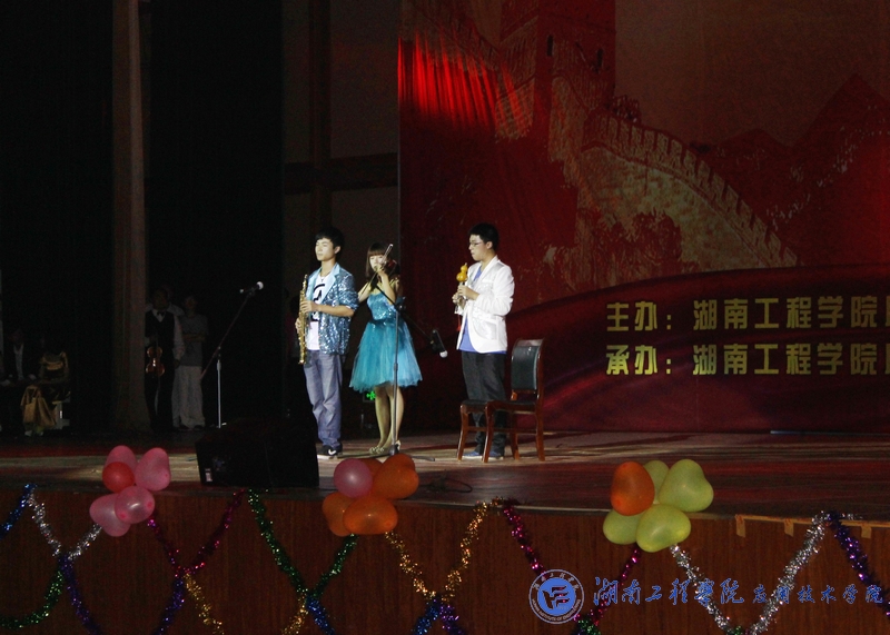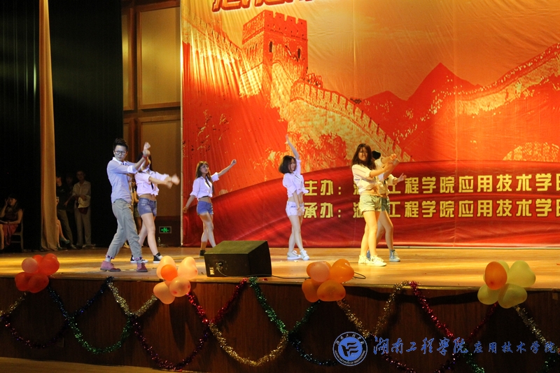 晚会一共编排了14个节目。在一段精彩的开场舞中晚会火爆开场,瞬间点燃了场下观众的热情。相声《应院三好学生》,话剧《挂科,你好》以诙谐幽默的语言和出色的表演赢得了观众热烈的掌声;乐器合奏《乐动中西》带领着大家领略到中西音乐相互交融的魅力,小提琴独奏更是成为了全场的亮点,悠扬婉转的旋律,让师生们深深的陶醉其中;健美操队带来的《啦啦操》、舞蹈队的芭蕾舞《冰与火》、极具创新意味的《英雄联盟》等节目让同学们赞叹不绝。歌曲《感恩的心》和《致青春》带领大家回忆美好大学生活中的点点滴滴,引发了同学们强烈的共鸣,回望在母校度过的青春岁月,心中满是别离的不舍;最后登场的《湖工最强音》将晚会的气氛推向了新的高潮,beat365官网校园歌手大赛冠军邓淑君的歌声赢得了同学们的连连叫好。