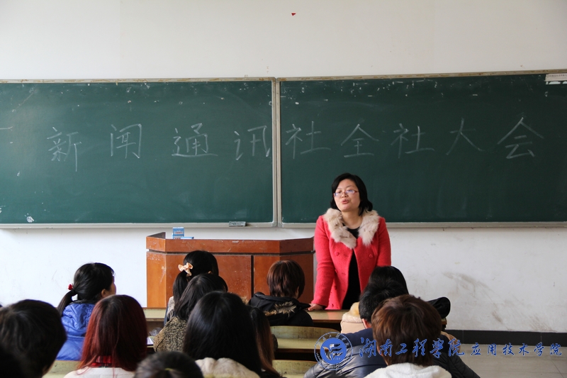 指导员陈欢老师在会上作了讲话。她对上学期新闻通讯社的工作给予了肯定,要求大家再接再厉,再创新高。除此之外特别要求社员对工作必须严谨对待、努力学习。