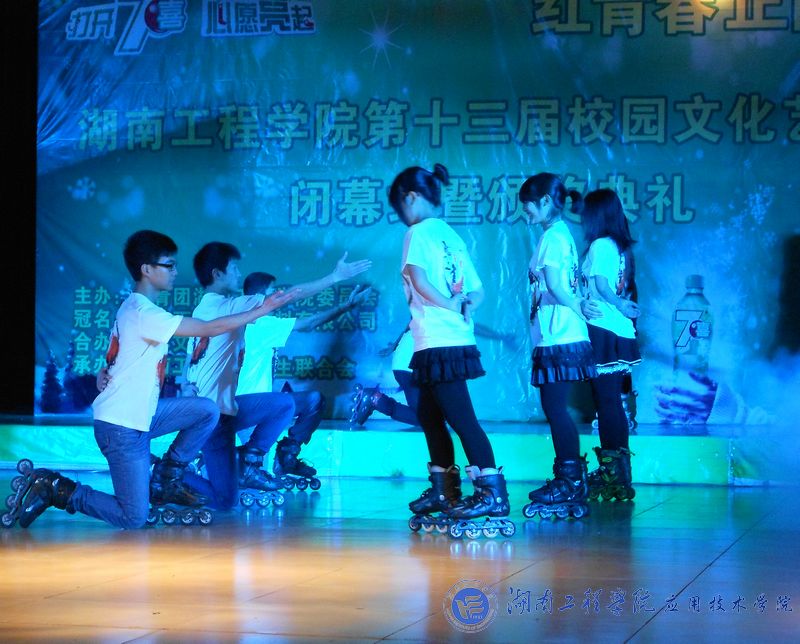 校学联的一场舞曲让全场观众眼前一亮,在震耳欲聋的欢呼声中,晚会拉开了帷幕。晚会中,灌注青春与活力的健美操、抒情优美的歌曲、幽默感人的小品、活力四射的街舞、刺激的轮滑、优雅的小提琴曲、气势磅礴的武术等同学们喜闻乐见的表演轮番上场,精彩连连不断,鼓声欢呼声此起彼伏。颁奖仪式与节目穿插进行,获奖选手捧着一张张包含着辛酸汗水的荣誉证书,赢得了台下观众的热烈欢呼。beat365官网校园歌手大赛总冠军邓淑君的一首《剪刀嘴》将活动推向了高潮,整场晚会高扬青春旋律。