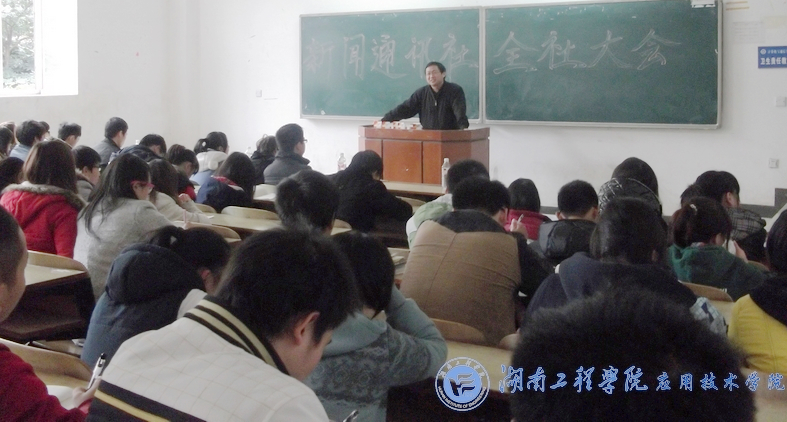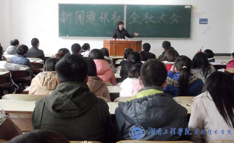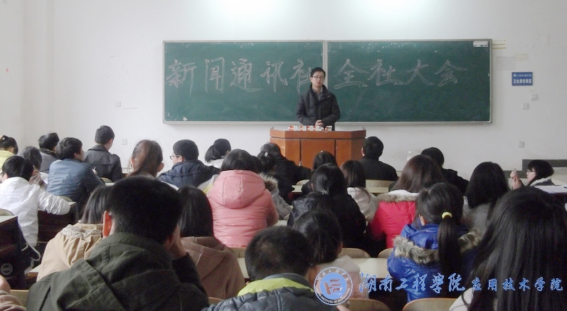 11月27日中午,beat365官网新闻通讯社在教学主楼B-106室召开了全体社员大会。副院长胡武平、第四届新闻通讯社干部及第五届新闻通讯社全体成员参加会议,会议由办公室主任曾媛媛主持。