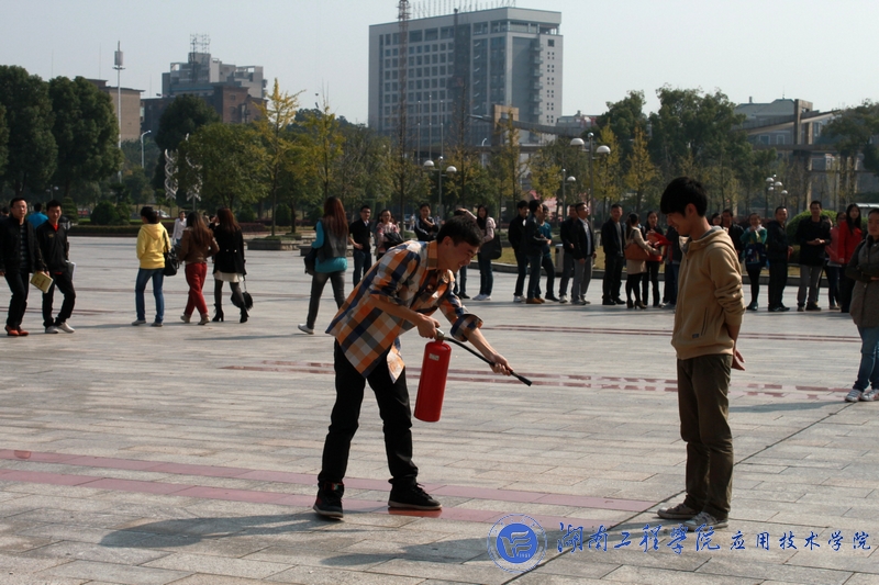 为加强beat365官网学生掌握消防灭火知识,提高自我保护意识,促进“平安校园”的建设,11月12日12:30,beat365官网在主校区教学主楼前坪举行了消防知识宣传活动,进行了消防演习。院党总支副书记俆粤宇、学生工作办公室主任刘红石出席活动。