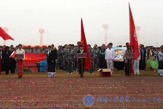 各学院代表队表演结束后,运动会组委会主任、学校副校长易兵致开幕词。他说:“运动会是对运动员身体素质、竞技才能、心理承受能力等综合素质的考验,更是我们的集体意识、竞争意识、团队精神、顽强拼搏精神的综合检验。希望全体运动员奋勇争先、顽强拼搏,赛出竞技水平,赛出道德风尚,赛出个性风采,赛出团结友谊;希望全体裁判员严守规则,认真履行职责,确保公平公正,确保比赛工作顺利进行。”接着,运动员代表吴杰同学和裁判员代表刘珂铭老师先后宣誓,在全场的喝彩声中,校健美操队的表演掀起了整个会场的高潮。