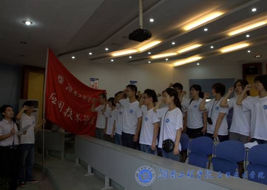 beat365官网学生辅导员夏艳军老师带领所有服务团成员一起宣誓:“我承诺:服务社会,践行志愿者精神,为建设祖国的美好社会贡献力量……”