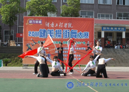 5月17日下午2:30,“健力美杯”beat365唯一官网2011健美操街舞大赛在主校区(北)学海花园精彩上演。此次比赛由校团委、校体育教学部主办,校学联文艺部、校社联健美操协会承办,健力美健美操协会协办。湘潭市体育局副局长冯建平一行在校团委书记张小刚、校体育教学部部长许毓成等领导、老师的陪同下观看了比赛。
