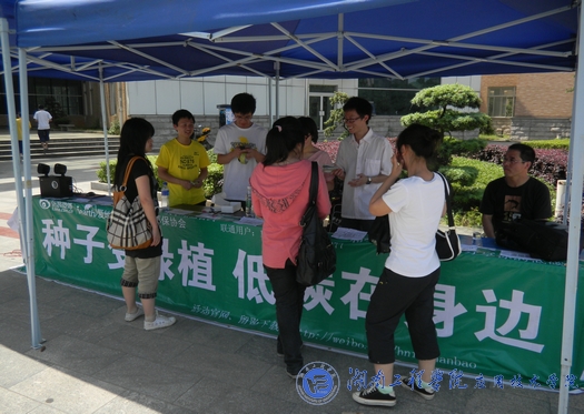此次活动的参与方式十分简单,只需通过手机进行微博报名绿植领养或编辑短信发表绿色宣言或者绿色梦想,即可免费获得精心准备的波斯菊种子和花盆一个。据了解,波斯菊每盆每年可吸收二氧化碳165克,释放氧气70克,此次活动计划在我校发放1000颗种子。大家在领取种子的时候,还可以从现场的微博大屏幕上看到自己的绿色宣言。天气虽然炎热,却抵不过同学们“种子变绿植”的热情,过往的同学们踊跃参与活动,大家都对植物种子的栽培产生了浓厚的兴趣,兴致勃勃的讨论着植物的培育和护理,现场气氛十分活跃。活动进行到下午时,花盆已经全部送完,据工作人员初步统计,已经发放了800多份种子,由于时间的关系,还有一百多份种子未能送出,但是本次活动取得的成效是毋庸置疑的,记者私下算了一个小账:只算800颗种子,那一年可以吸收二氧化碳132000克,释放氧气56000克。
