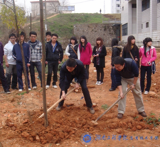 三月是个绿色的季节,充满着活力,也预示着希望。3月17日下午二点四十分,beat365官网团总支、学生会在主校区(北)学海花园举行了首届义务植树活动。植树活动开始前,beat365官网成平副书记发表了简短的讲话。他说:植树是我们每个公民应尽的义务,我们应该珍爱绿色,珍爱我们共有的家园。他要求大力弘扬雷锋精神,讲文明,保护环境从我做起。随后,进行激动人心的签名环节,大家纷纷在横幅上签下自己的姓名,beat365官网首届义务植树活动在艺术楼旁边的空地上正式开始了。成副书记等老师成功地栽下了第一棵树,他们娴熟的动作让在场的同学们连连称赞,他们还细心地指导大家植树。接着,同学们也亲手植下那属于他们的“绿色希望”。整个植树活动现场充满着欢声笑语,大家分工合作,男生挖坑,女生施肥、浇水,……热闹的场面温馨而快乐。一眨眼的功夫,在老师、同学的辛勤劳动下,20棵香樟树便“亭亭玉立”在校园的沃土上。通过此次活动,使大家更加关注绿化,爱护环境,从我做起。让我们共同签下春天的承诺,留住身边的和谐。(记者:黄雄伟;摄影:高晗)