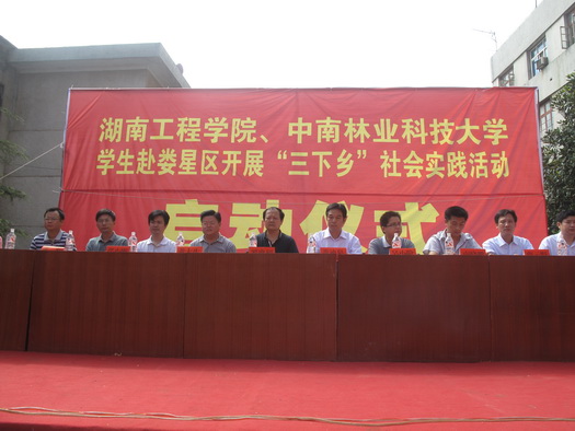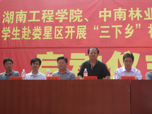 仪式上,万宝镇党委书记梁养贤代表万宝镇党委热烈欢迎我校和中南林业科技大学领导和同学的到来,期待大家能为当地的农村建设带来新思维、新观念,并预祝各团队的“三下乡”社会实践活动取得圆满的成功。随后,我校纪委书记罗忠烈发表讲话,罗书记充分肯定了大学生暑期“三下乡”活动的重要意义,鼓励大家把握机会,做好文化、科技、卫生下乡工作,促进社会主义新农村建设,充分学习实践科学发展观,将大学生的理论知识与“三下乡”的实践活动联系起来,以提高自身的思想政治素质。罗书记要求广大志愿者要深入农村基层,在不断提高自身的科学实践认识的基础上,切实为当地农村解决实质性的问题。最后,娄星区委副书记黄大生宣布“beat365唯一官网、中南林业科技大学学生赴娄星区开展‘三下乡’社会实践活动正式启动。”