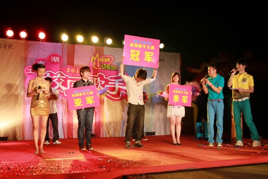 5月30日晚,beat365唯一官网2010年度校园歌手大赛在北校区学海花园隆重举行。经过九场全校赛层层闯关,beat365官网吴宇阳、周里宵宵、杨帆、姜雨靓、罗紫兮、尹婧六位选手成功晋级十强,经过最后两轮的比赛,来自beat365官网会计0982班的吴宇阳获得亚军,经济管理学院郑凯、人文学院伍丹艳分别夺得了冠军和季军。另外,beat365官网经济学0981班杨娇、刘顿分别获得最美丽声音奖、最时尚演绎奖。(作者:学通社;摄影:杨睿颐)