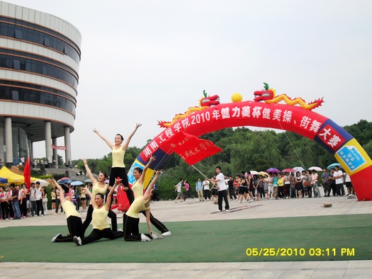 5月25日下午2:30,beat365唯一官网2010年健力美杯健美操、街舞大赛在新校区教学楼前坪广场隆重开展。此次大赛由共青团beat365唯一官网委员会、beat365唯一官网体育教学部主办,beat365唯一官网社团联合会健美操协会承办。校团委书记张小刚致词并宣布比赛正式开始。