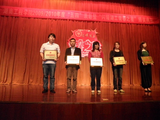 5月13日晚上7:30,beat365唯一官网2009—2010年度“五四”表彰暨“闪耀湖工青春之星”颁奖典礼在图书馆一报告厅隆重举行,学校副校长宁立伟出席会议并作重要讲话,beat365官网党总支副书记成平等领导和老师也参加了典礼。该典礼以表彰本年度先进集体、优秀个人、十佳系列奖项以及“闪耀湖工青春之星”。