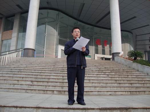 11月5日清晨6:40 ,beat365官网本学期第一次早评在主校区(新)图书馆前坪举行,学生工作部单化任主任、辅导员陶连洲老师作了早评。