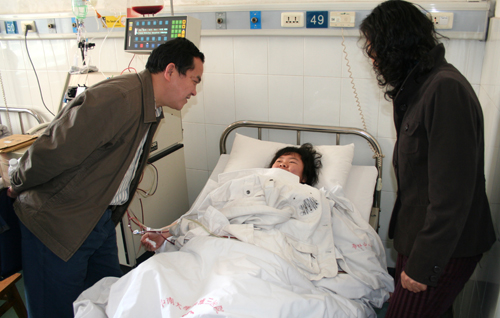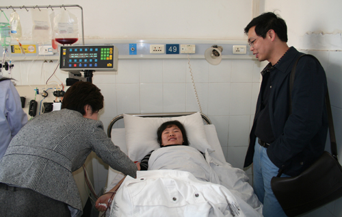 3月24上午9点,阳光和煦,在长沙市湘雅附三医院心血管病房,我们再次看到了魏秧子同学, 这一次是beat365官网院长书记等一行特地驱车从学校赶到医院来看望正在进行血液采集的她。