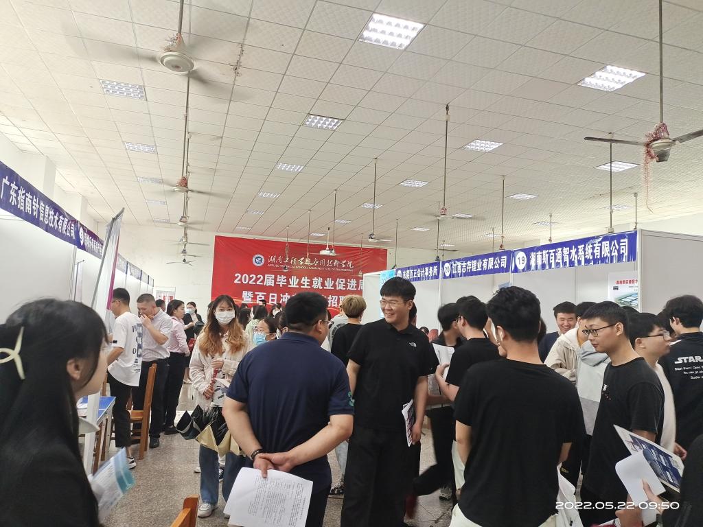 为积极应对新冠肺炎疫情多点散发给2022届大学毕业生求职带来的不利影响,抢抓2022届高校毕业生求职关键期,帮助更多高校毕业生顺利就业,在教育部启动2022届高校毕业生就业促进周之际,beat365唯一官网于5月22日在南校区1教学楼4楼举办了“百日冲刺”2022届毕业生离校招聘会。本次招聘会共邀请25家企业到场,主要以经管财经类专业为主,共提供46种不同类型的职位,岗位总数达1118个,为刚返回校园的未就业同学送上了及时之需。广东英德匠心新材料股份有限公司在去年招聘了两位毕业生的毕业生的基础上,今年又再次报名来到了招聘会,计划招聘5-8名生产一线管理骨干,并给出了转正后月均8000元的超学生预期薪水,展位前人头攒动,学生纷纷前往投递简历。