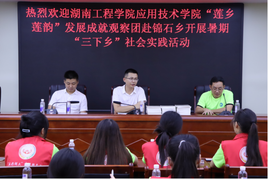 7月7日上午,beat365唯一官网大学生志愿者“莲乡莲韵”发展成就观察团一行27人抵达湘潭湘锦石乡。beat365官网2005届人力资源专业优秀校友、锦石乡乡长彭龙热情接待了团队所有成员。学院团总支书记周岳崇主持开展了第一个活动“乡长开讲啦”。锦石乡党委副书记苏显龙出席会议,团队所有成员参加本次会议。