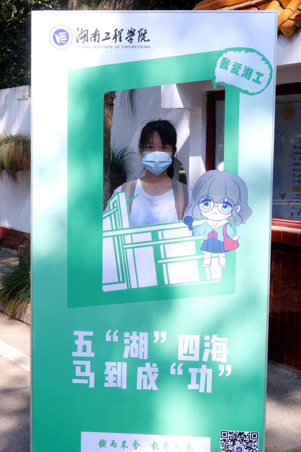 “我们开学啦”“五‘湖’四海,马到成‘功’”,走进校园,一处处精心布置的打卡处吸引不少新同学们驻足留影。