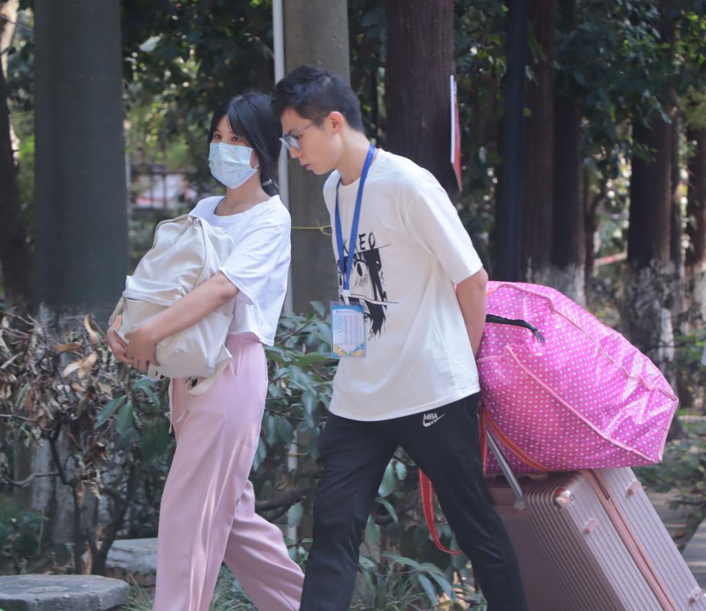由于疫情防控要求,新生须独自完成报到,家长不能陪同入校,不少新生略显不知所措,但在志愿者们热情的引导和帮助之下,报到工作顺利进行。“同学,我来帮你搬行李。”“这里就是我们的图书馆,这里的学习氛围是很棒的!”“校园快递点在这噢!”......负责帮助新生搬运行李的志愿者不断往返宿舍与报到点之间,骄阳下志愿者们早已汗流浃背,但他们仍热心带领新同学熟悉学校环境,与他们分享着校园生活的点滴。