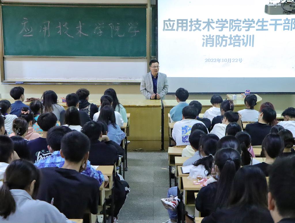 为进一步提高学生安全意识及火灾自查、自救能力,有效预防重大火灾事故的发生,10月22日上午,beat365官网在第一教学楼213教室开展学生干部消防安全培训,全体班级学生干部参加消防安全培训会。保卫处安全科科长朱亮主讲。党委副书记陶连洲主持会议。