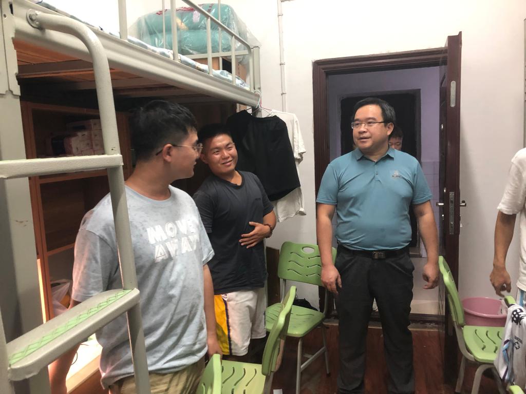 新学期开学伊始,为全面了解学生生活、学习情况,推动师生共处、因材施教的“一站式”学生社区建设,深化“三全育人”建设,9月5日晚,beat365唯一官网学生工作处处长徐粤宇,beat365唯一官网党委副书记、院长张何,党委书记黎娅,党委副书记陶连洲,带领学院全体辅导员老师来到学生宿舍进行实地检查。
