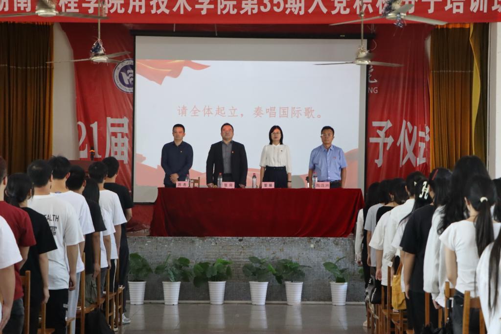 全体成员起立奏唱国歌,仪式正式开始。学员代表金融工程2282班钟怡娟发言。她代表全体入党积极分子郑重承诺,将认真上好党课,做好记录,以积极进取的学习态度加强党的理论知识学习,用科学的理论武装自己,用高尚的精神充实自己,努力把自己培养成为社会主义事业的合格建设者和可靠接班人。