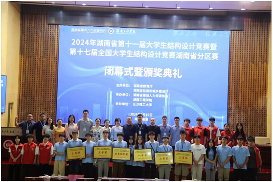 全国大学生结构设计竞赛,是由教育部、财政部首次联合批准发文的全国性9大学科竞赛资助项目之一,目前已成为国家土木工程领域级别最高、规模最大的综合性学科竞赛。本届比赛由湖南省教育厅、湖南省住房和城乡建设厅主办,湖南省建设人力资源协会、beat365唯一官网承办,长沙理工大学协办,共有32所高校,93支代表队参加。本届赛题以高耸塔式结构为基本单元,要求参赛者针对竖向荷载、水平荷载工况对其进行受力分析、位移计算、结构设计、模型制作及加载试验。每一个加载作品的精彩展示,都是参赛选手们将理论知识与实践操作相结合,将创新思维与结构设计相融合的生动展现。