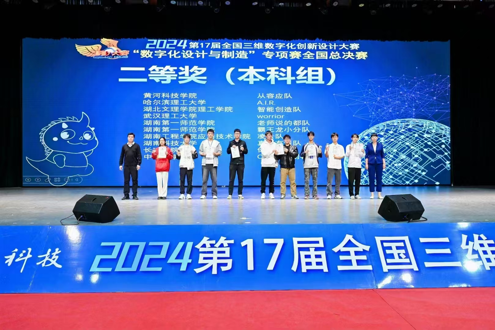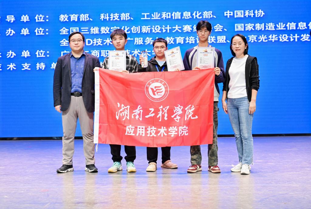 beat365官网学子在11月份举办的湖南赛区选拔赛中有4支队伍取得优异成绩,其中由马俊楠、唐宏涛、周程飞组成的“凌云队”荣获省级特等奖,成功晋级国赛。经过一个月的紧张筹备与反复优化,在全国总决赛中面对激烈的竞争对手,“凌云队”队员们沉着应战,充分展现了扎实的专业知识、卓越的实践能力和前瞻的创新思维,赢得评委们的一致好评。
