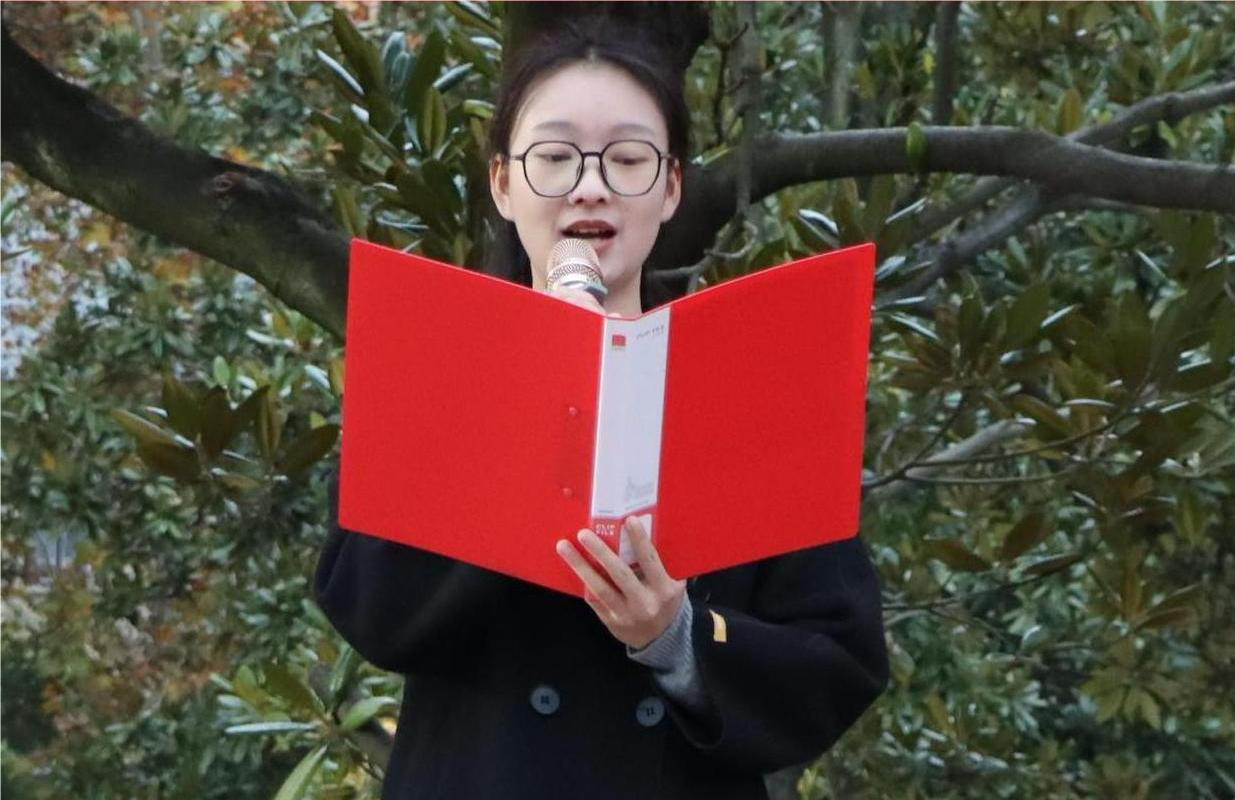 学生党员代表工商管理2282班蒋敏表示:“我们要以先烈为榜样,铭记前人精神,奋发图强,踵事增华,为实现民族复兴的伟大梦想而不懈奋斗!”