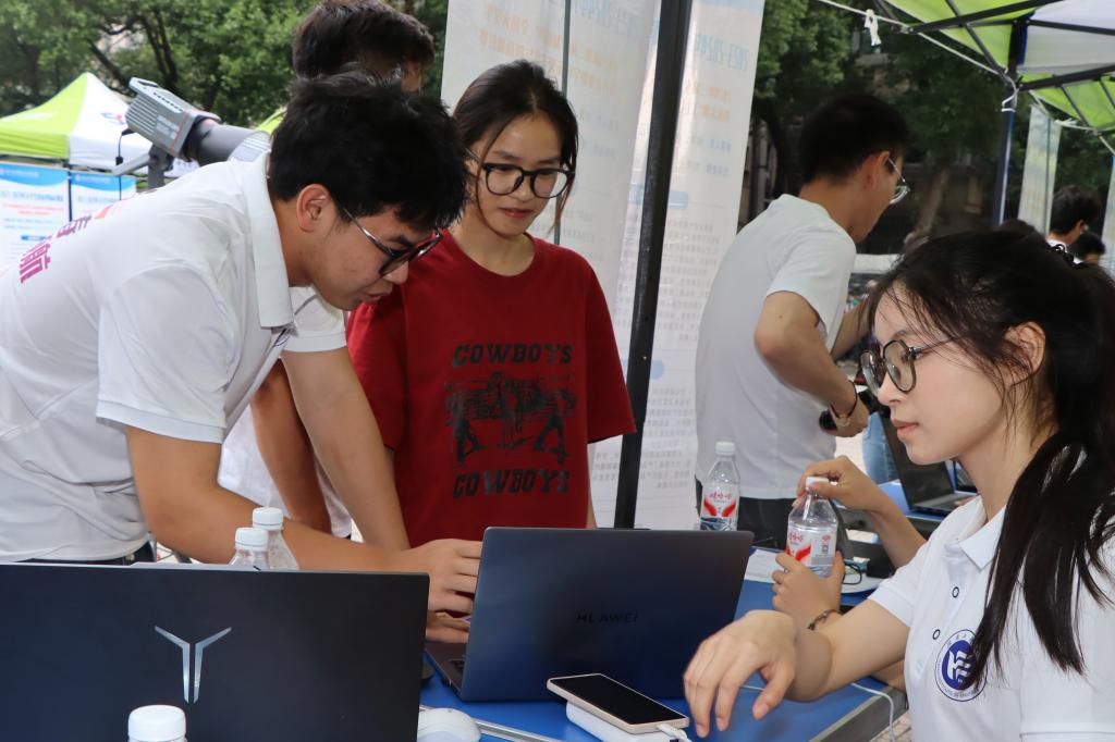 5月25日,书院路校区实验楼前,beat365唯一官网“2023-2024大学生科技创新成果展”拉开了“智汇青春、创新领航”2025年大学生科技创新活动周帷幕。beat365唯一官网党委委员、副校长魏克湘教授,校宣传部、学工部、团委和相关学院负责人出席开幕式。
