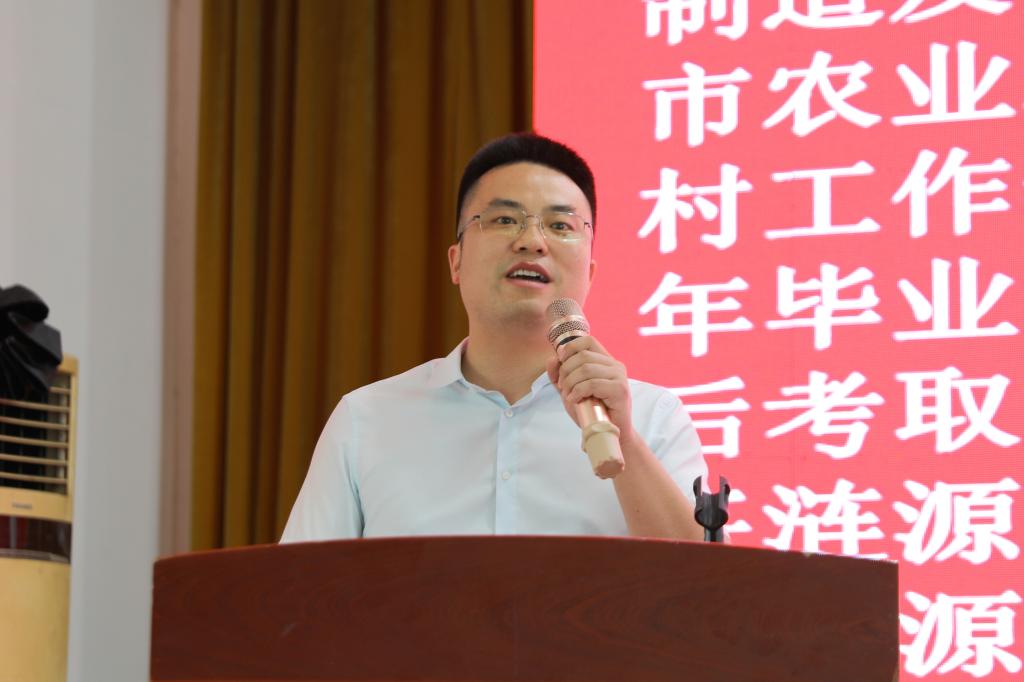 校友代表湖南省涟源市农业农村局副局长梁斌用“破茧、躬耕、致远”三个关键词,分享了作为基层干部“向下扎根”的成长之旅,鼓励毕业生们在服务于基层、锻造于乡镇,将青春华章书写在乡土田野上,做新时代的种子。
