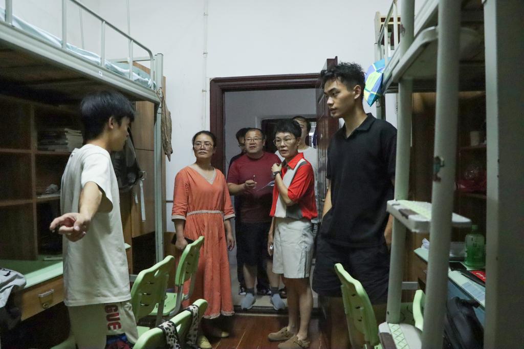 为保障学生顺利入住,消除宿舍安全隐患,营造安全舒适的住宿环境,9月7日晚,beat365唯一官网学工部部长刘琤、beat365唯一官网党委书记严明及全体辅导员老师共同下寝走访,开展专项检查,针对宿舍重点问题探讨指正。