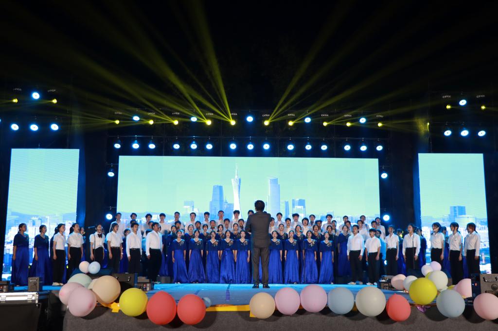 最后一曲全场大合唱《东方之珠 强军战歌》响彻夜空,激昂的旋律传递着家国情怀与青春担当。晚会在主持人“愿2025级新生乘风破浪,不负韶华”的祝福声中圆满落幕。随后,校领导、嘉宾与全体演职人员登台合影,快门声里,星光、笑脸与校旗同框,把这一夜永远定格。