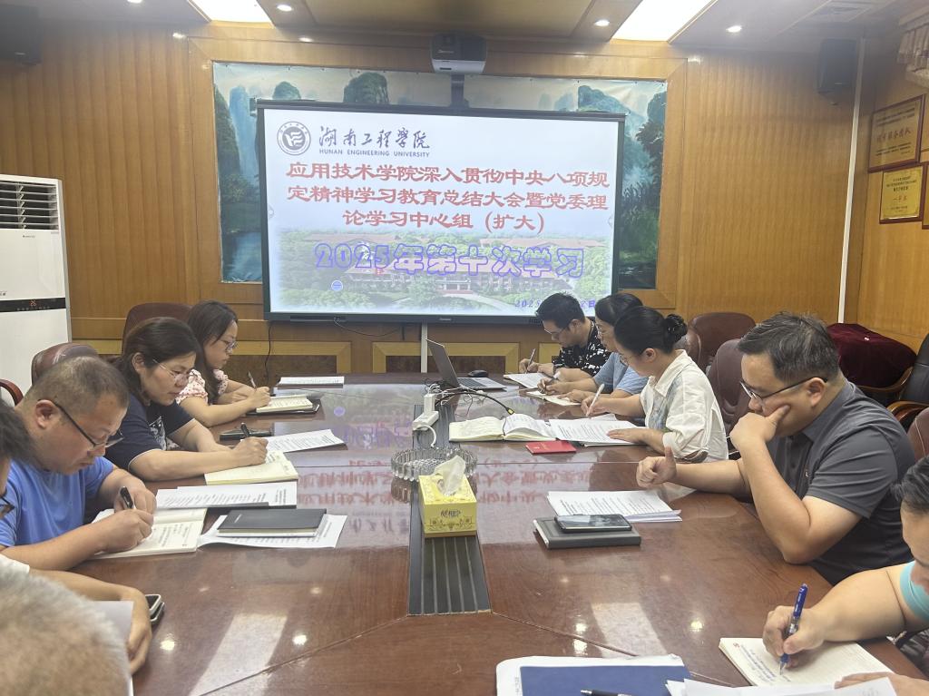9月17日,beat365官网深入贯彻中央八项规定精神学习教育总结会暨2025年党委理论学习中心组第十次(扩大)学习在办公楼207会议室举行。院党委书记严明主持学习,院党委理论学习中心组成员、全体教工党员、教职工参加学习。